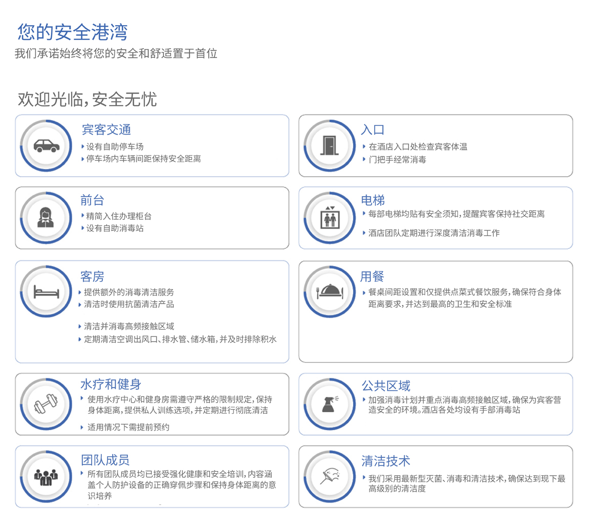 - 会议/活动室设有“安全站”,提供手套、口罩和消毒剂。